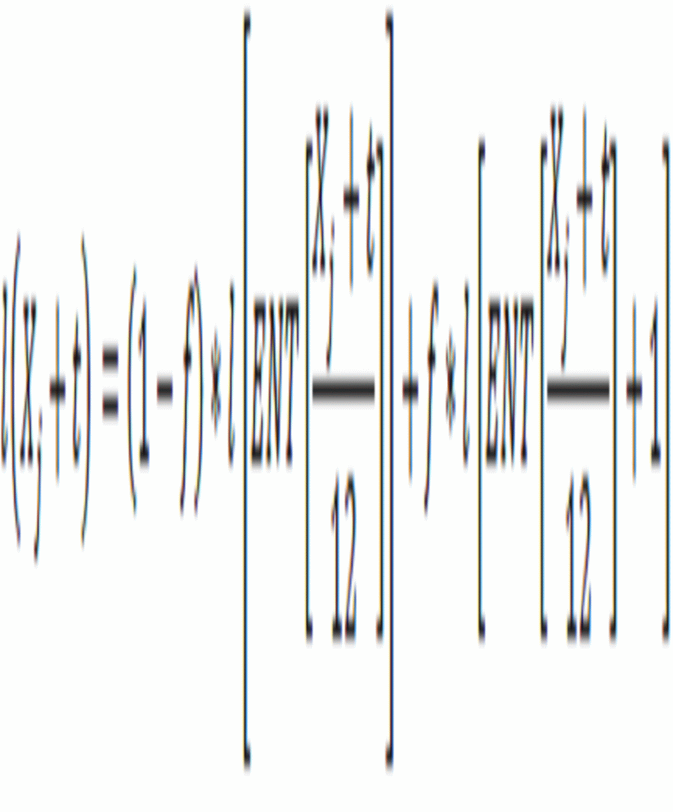 Donde l(Xj) y l(Xj+t) se obtienen por la interpolación lineal a partir de los valores de tabla de mortalidad rentistas activos o inválidos según correspondiera al estado revestido por el asegurado y tal que: