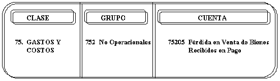 75205 PÉRDIDA EN VENTA DE BIENES RECIBIDOS EN PAGO