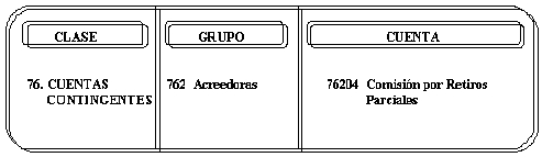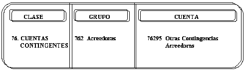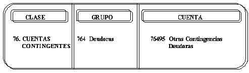 Las cuentas que conforman este grupo se contabilizarán sin necesidad de que cada una tenga una contrapartida, afectando una cuenta genérica, 76305 - Deudoras por Contra (CR)-.