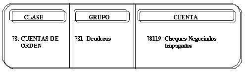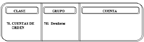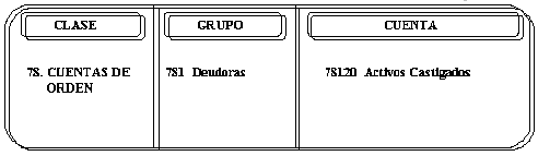 Las cuentas que conforman este grupo se debitarán sin necesidad de que cada una tenga su contrapartida, acreditándose a una cuenta genérica 78305 –Deudoras por Contra (CR)-.