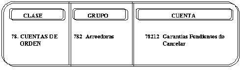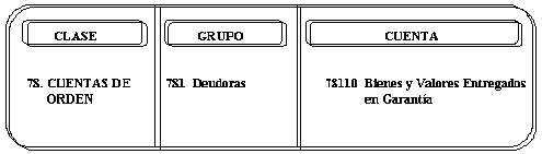 | CREDITOS 1. Por el importe de los bienes y valores recibidos en garantía. | DEBITOS 1. Por la devolución de los bienes y valores recibidos en garantía. 2. Por la venta en pública subasta o adjudicación de los bienes o valores recibidos en garantía. |