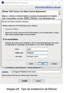 - BITVISE: Es un servidor SSH para Windows que implementa tanto el uso de ssh como de SCP en Windows.