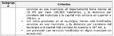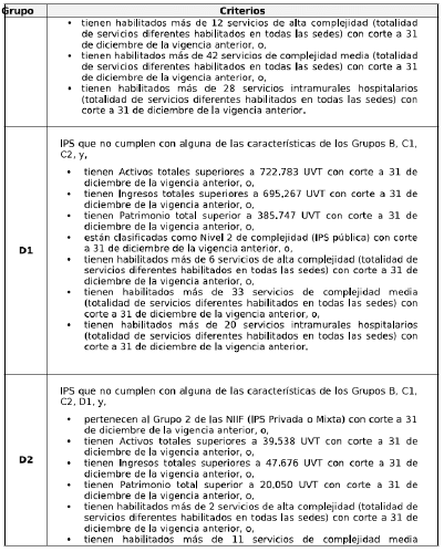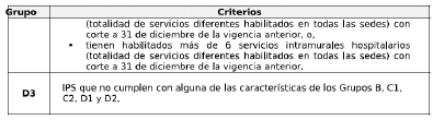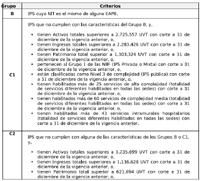 Nota: Las fuentes de información para elaborar los umbrales de cada criterio corresponden a la información reportada por las IPS en el Archivo Tipo FT00l de la Circular Externa 016 de 2016, la información de los módulos de Estado de Resultados y Balance General del Sistema de Información Hospitalaria (SIHO) y la información del Registro Especial de Prestadores de Servicios de Salud (REPS).