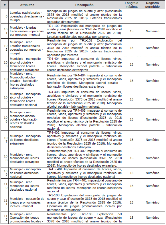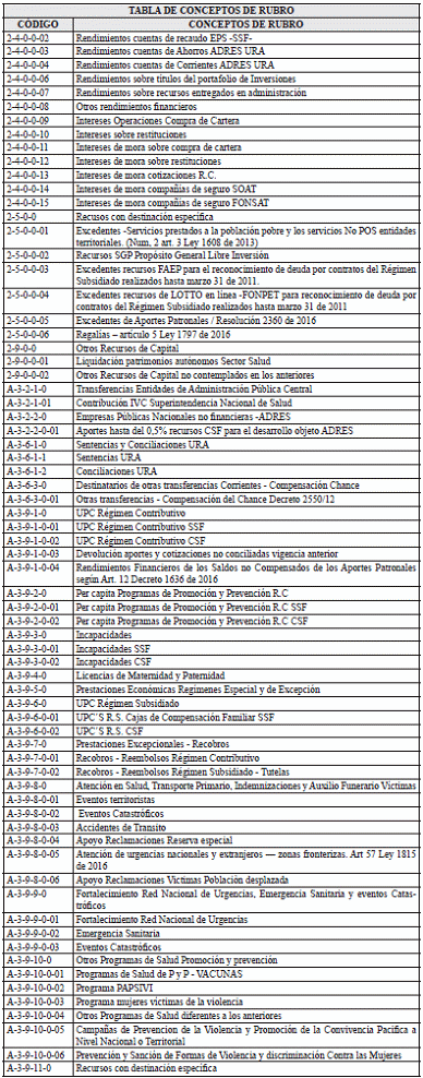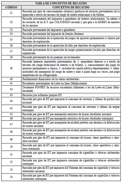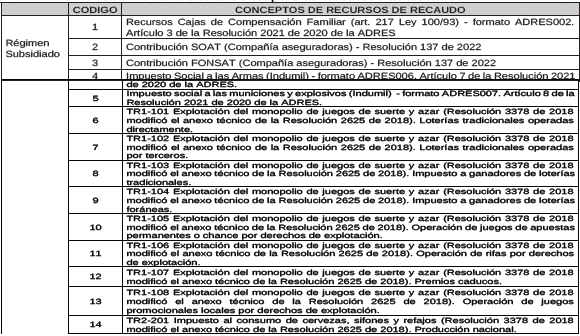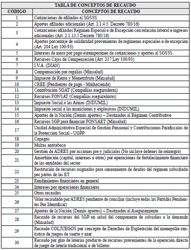 Tabla de Referencia: Conceptos de Recursos de Recaudo <Tabla adicionada por la Circular 5 de 2025. El nuevo texto es el siguiente:>