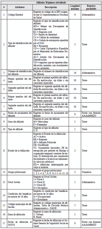 TABLA 19. Liquidación Mansual de Afiliados (LMA) Régimen Subsidiado <Tabla adicionada por la Circular 5 de 2025. El nuevo texto es el siguiente:>