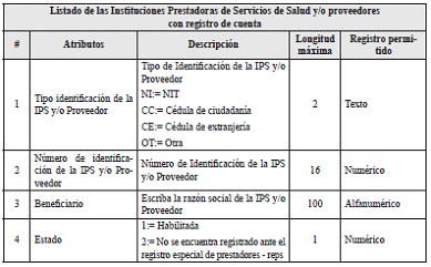 16. Listado de las Instituciones Prestadoras de Servicios de Salud y/o proveedores con registro de cuenta <Tabla eliminada por la Circular 5 de 2025>