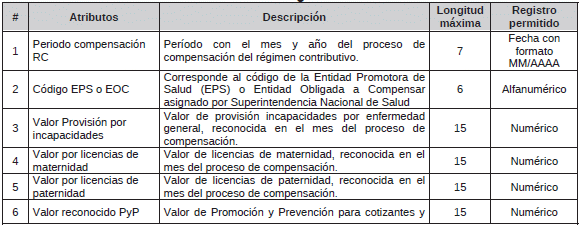 TABLA 22. Giro UPC Régimen Contributivo <Tabla adicionada por la Circular 5 de 2025. El nuevo texto es el siguiente:>