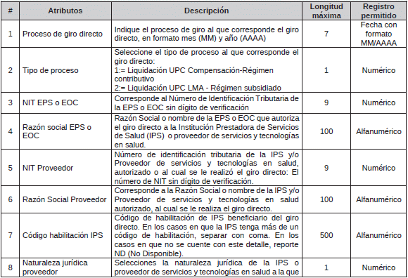 TABLA 23. Giro Directo a IPS y Proveedor de Servicios y Tecnologías en Salud por UPC <Tabla adicionada por la Circular 5 de 2025. El nuevo texto es el siguiente:>