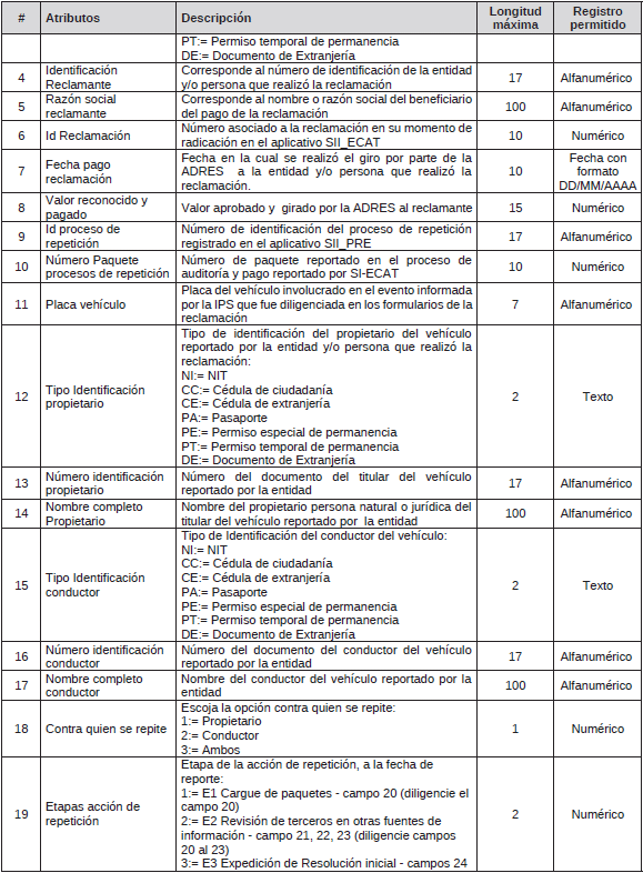 Para efectos del reporte de información a través del NRVCC, ADRES debe cumplir con las siguientes especificaciones técnicas para el cargue y reporte de la información: