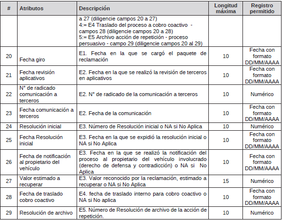 TABLA 31. Acciones de reptición contra propietarios de vehículos sobre reclamaciones NO SOAT pagadas por la ADRES - cobro coactivo <Tabla adicionada por la Circular 5 de 2025. El nuevo texto es el siguiente:>