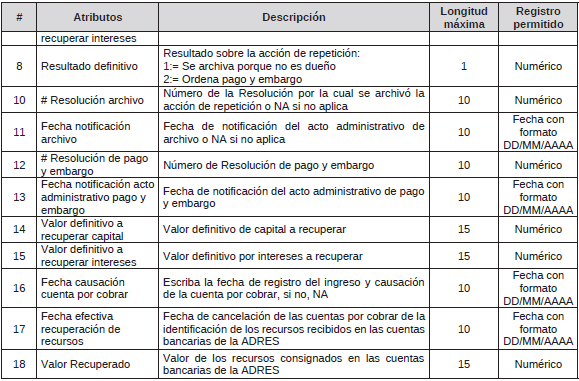 Fallos de tutela: De acuerdo con la nota externa 201433210469851 de 2014 del Ministerio de Salud y Protección Social, la ADRES debe reportar la información de las prestaciones económicas correspondientes al cumplimiento de fallos de tutela.