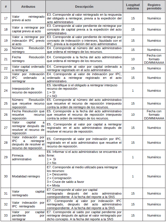 TABLA 32. Reintegro de recursos apropiados o reconocidos sin justa causa <Tabla adicionada por la Circular 5 de 2025. El nuevo texto es el siguiente:>