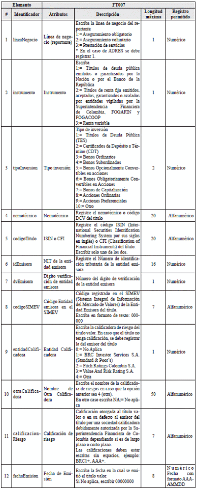 2. Archivo tipo FT007 – Control de Inversiones Inscritas en el Mercado de Valores de Colombia