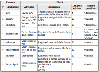 4. Archivo tipo FT020 – Facturas Compra de Cartera <Archivo tipo eliminado por la Circular 5 de 2025>