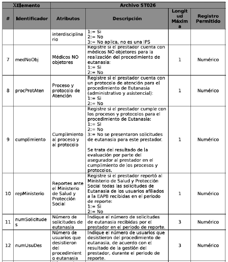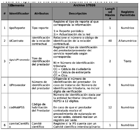 Las Entidades Promotoras de Salud, Entidades Adaptadas, Entidades de los Regímenes Especial y de Excepción deben reportar la información del anexo técnico ST026 “Red de servicios para garantizar el derecho a la muerte digna (eutanasia)”, con la información de la red de servicios contratada para la realización del procedimiento de eutanasia exclusivamente y las solicitudes de eutanasia gestionadas por estos prestadores. El archivo correspondiente al anexo técnico debe estar firmado digitalmente por el representante legal de la entidad.