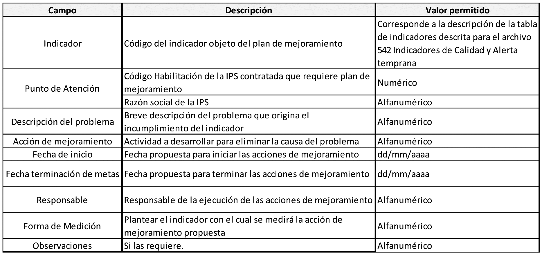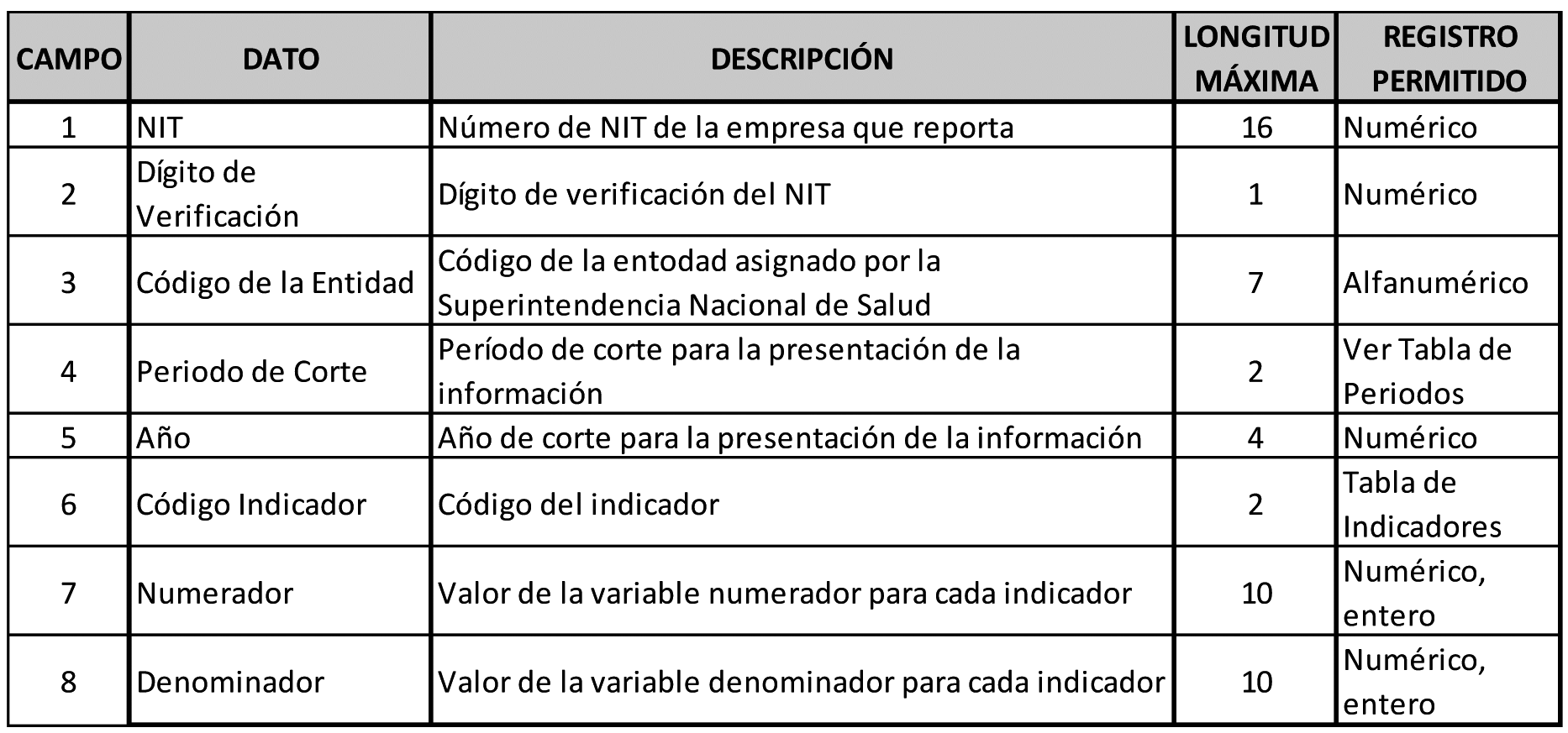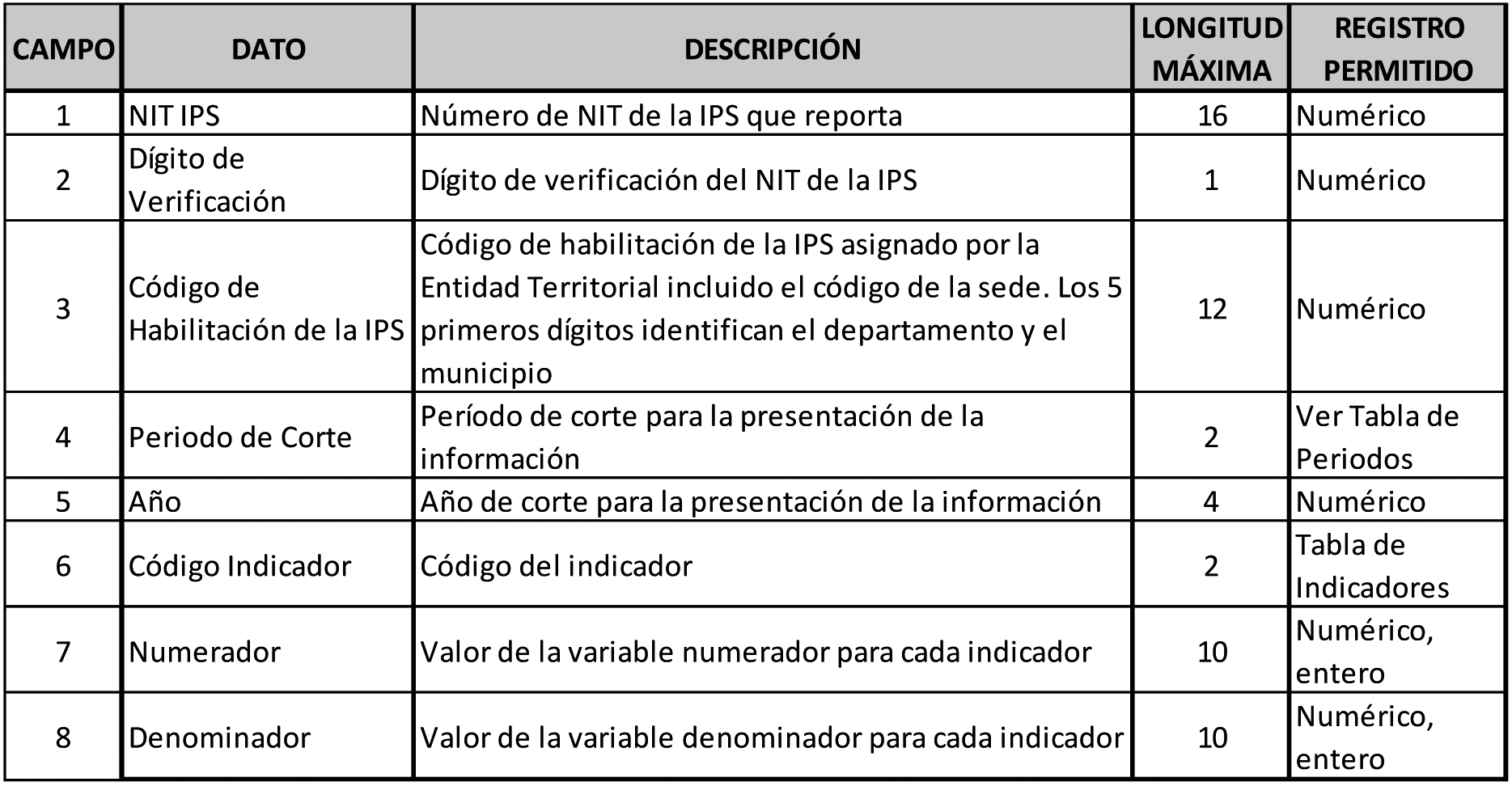 Los indicadores se deben reportar por IPS. Si la IPS tiene sedes, se deben reportar por cada sede. Tener en cuenta la periodicidad mensual del reporte de este archivo. (Ver tabla Periodos de Reporte Mensual).