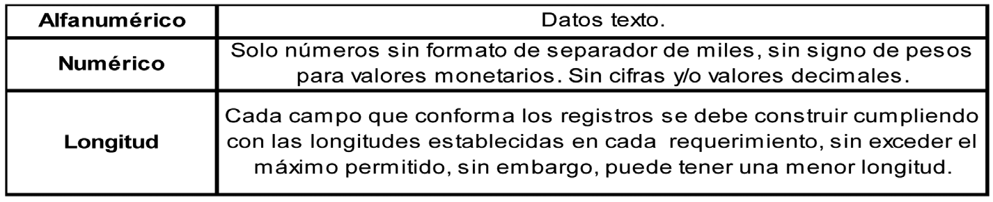 La información debe ser reportada en archivos planos con extensión .txt.