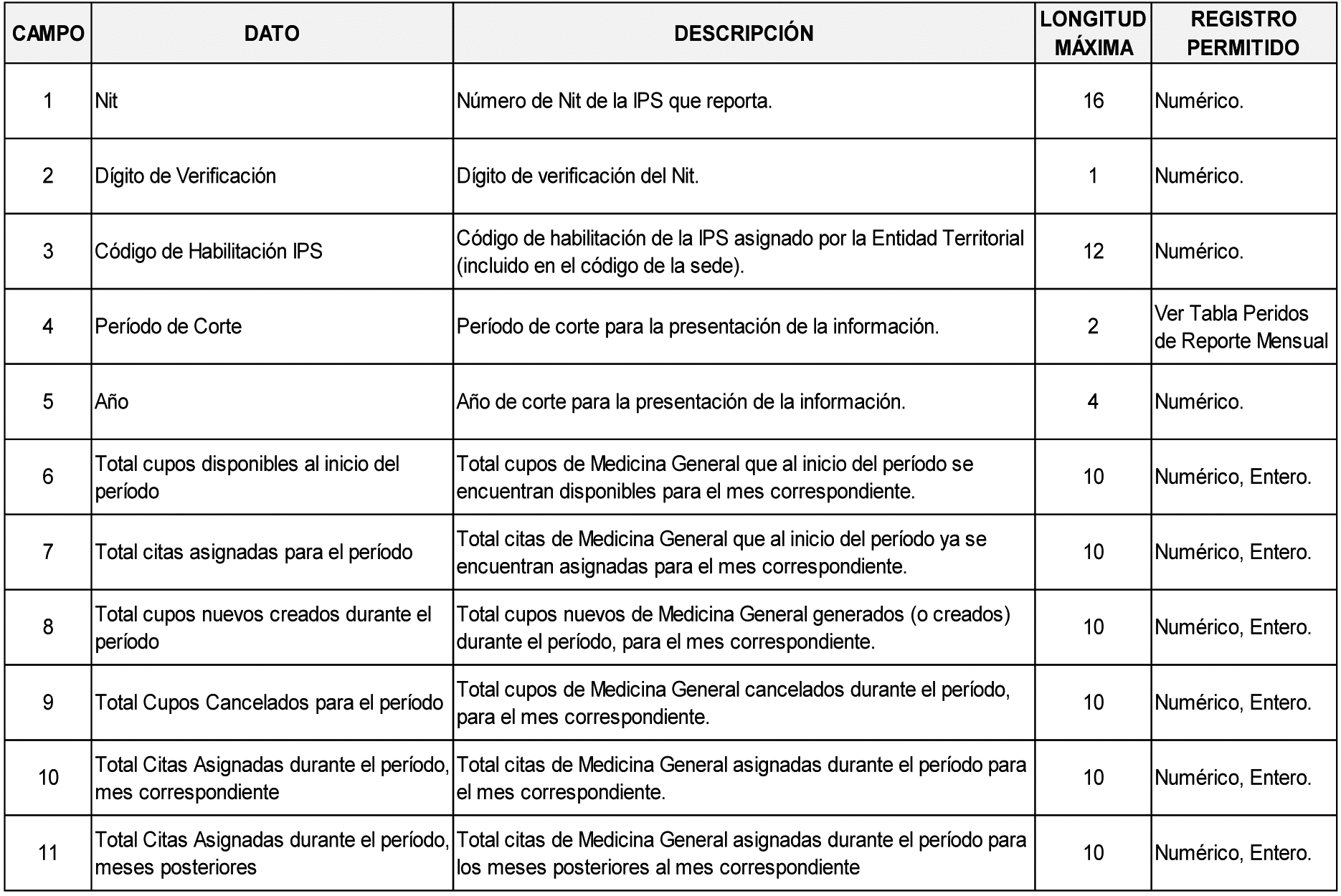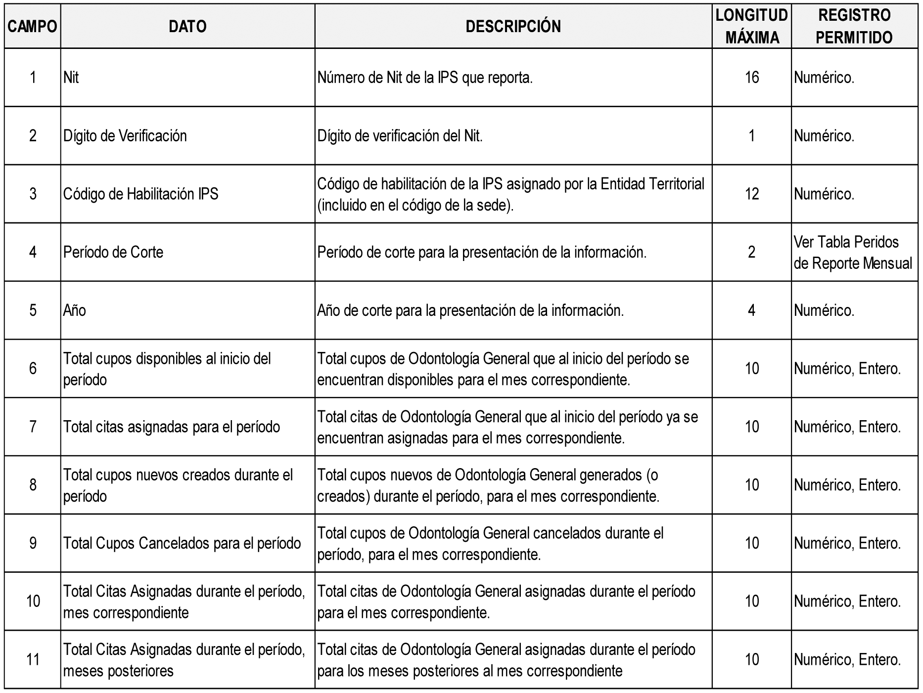 12 Las definiciones de los campos aplican de igual forma para el archivo tipo 546. “Informe Técnico Oferta de Citas para Odontología General”. Donde se encuentre consulta médica general, entiéndase por consulta de odontología general.