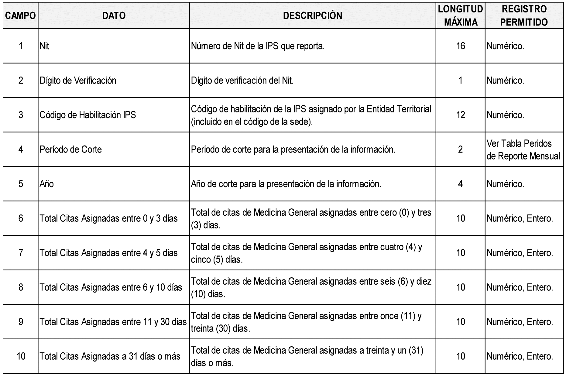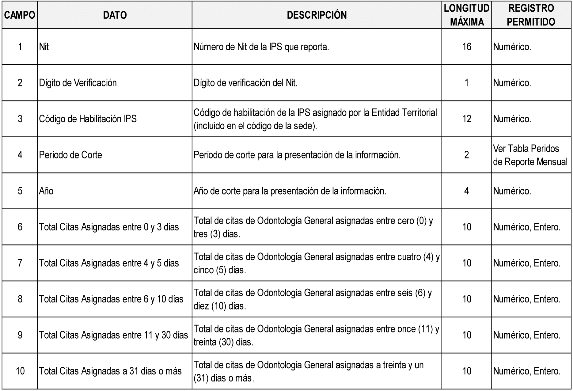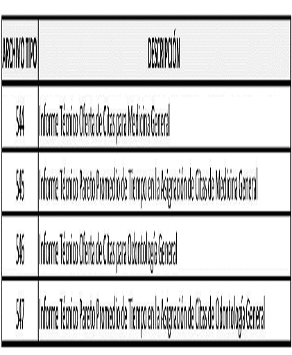 13 Las definiciones de los campos aplican de igual forma para el archivo tipo 547. “Informe Técnico Pareto Promedio de Tiempo en la Asignación de Citas de Odontología General”. Donde se encuentre consulta médica general, entiéndase por consulta de odontología general.