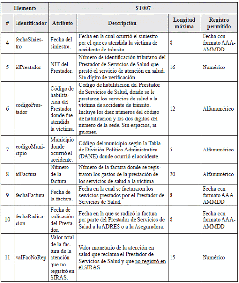 2.2 En el Anexo Técnico ST007 tendrán que reportar la relación de Prestadores de Servicios de Salud que, habiendo presentado reclamación por atenciones en salud a víctimas de accidentes de tránsito, hayan omitido el reporte en el SIRAS (Sistema de Información de Reporte de Atenciones en Salud a víctimas de accidentes de tránsito).