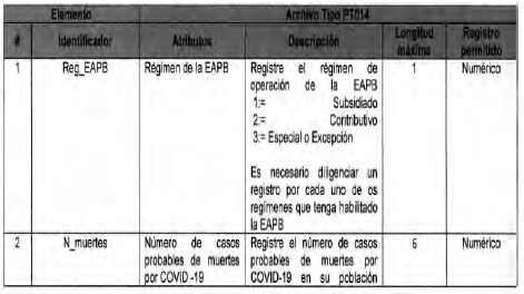 Anexo Técnico Archivo tipo PT014 - Seguimiento a la detección de casos de COVID-19 en las EAPB