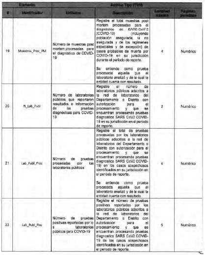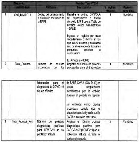 Anexo Técnico Archivo tipo PT015 - Reporte diario de pruebas diagnósticas para COVID-19 en la EAPB