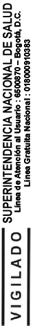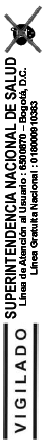 La palabra Vigilado se debe resaltar dentro del texto en una proporción mayor a la del nombre de la Superintendencia Nacional de Salud y en mayúsculas, de la siguiente manera: