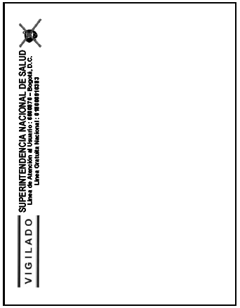 La expresión “Línea de atención al usuario: 6500870 (Bogotá) – Línea gratuita nacional 018000910383”, se anotará debajo de la expresión “SUPERINTENDENCIA NACIONAL DE SALUD”, en forma legible, como aparece en el ejemplo.
