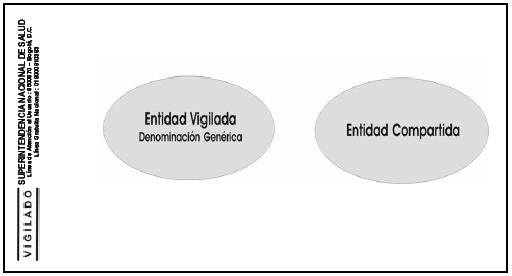 Cuando se trate de publicidad compartida con entidades no vigiladas por la Superintendencia Nacional de Salud, el nombre, logosímbolo o sigla de la vigilada se debe ubicar en la parte inferior izquierda acompañado de la denominación genérica de la entidad, y el de la firma no vigilada en el lado contrario guardando siempre el tamaño, proporción e igualdad con el de la entidad vigilada, tal como se señala a continuación: