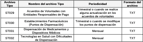 | Archivo Tipo | Nombre del archivo tipo | Periodicidad | Formato del archivo |