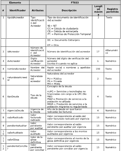 2. Anexo Técnico Archivo Tipo FT033 - Deuda por prestación de servicios de departamentos y distritos