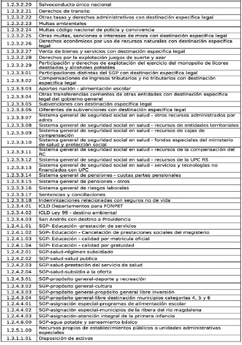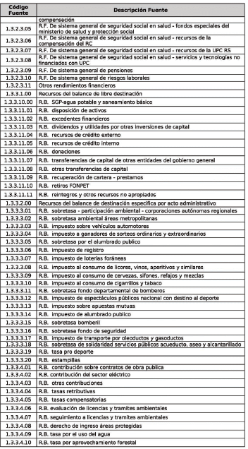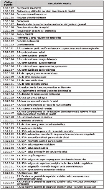 | 1 | codIngreso | Código presupuesto de ingreso | Corresponde al código del concepto de acuerdo con el código de presupuesto de ingresos y al nombre del concepto relacionados en la tabla AT-FT035 - 01: Tabla de Referencia Código Conceptos Ejecución presupuestal de Ingresos. | 1 | numérico |