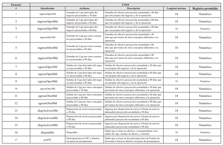 6. Archivo Tipo FT018 - Datos para el Cálculo del Riesgo de Liquidez