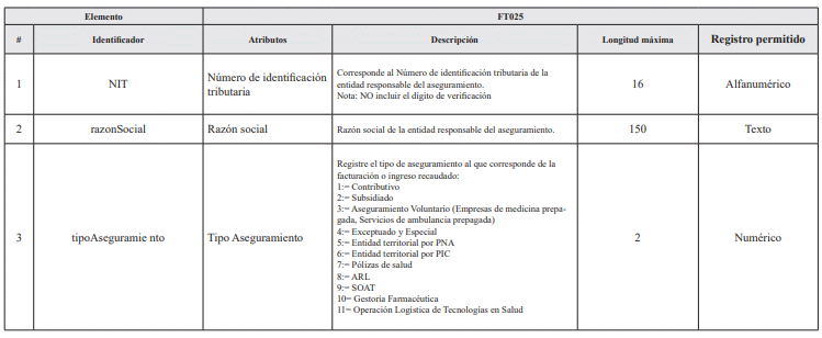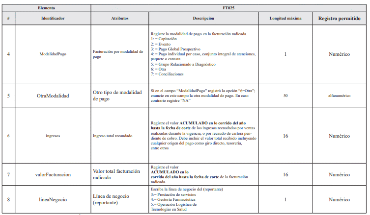 7. ARCHIVO TIPO FT025 - Reporte de Facturación Radicada por IPS, Gestores Farmacéuticos y Operadores Logísticos de Tecnologías en Salud a entidades del aseguramiento en salud
