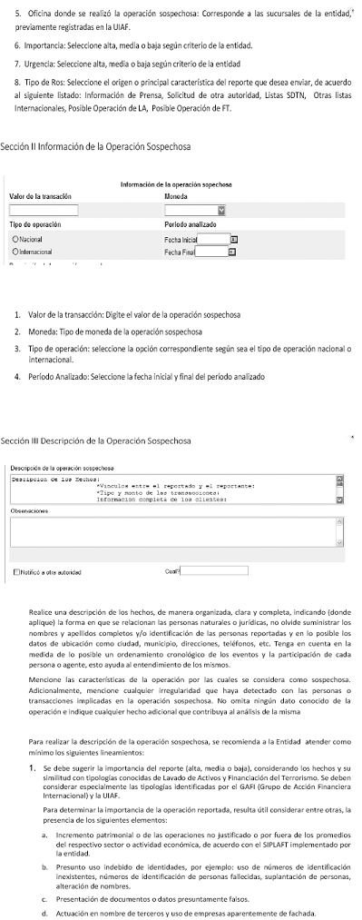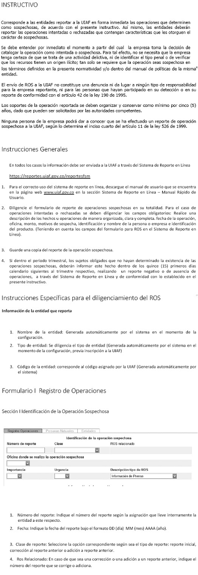 Si se llegara a tener conocimiento de una operación sospechosa o una operación intentada en la medida de lo posible debería reportarse como ROS directamente a la UIAF y de manera inmediata, conforme a las instrucciones señaladas por la citada unidad en el instructivo del anexo 1, que forma parte de la presente circular, o consultando la página de Internet www.uiaf.gov.co.