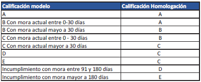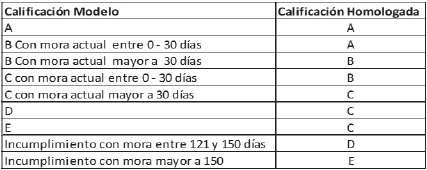 Para las modalidades de cartera que utilizan modelos de referencia será obligatoria la homologación para realizar los reportes de endeudamiento de crédito y el registro en los estados financieros. En caso de reportar la calificación por riesgo a las centrales de información, también se deberá aplicar la homologación.