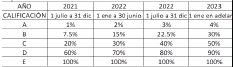 1) NOTA:La constitución del deterioro individual para la modalidad de microcrédito con los nuevos porcentajes señalados en el Anexo 1, comenzará a aplicar a partir del 1º julio de 2021 en forma gradual y acumulativa, manteniendo el % señalado a continuación, durante todo el semestre:![]() Del 1 de enero de 2023 en adelante, las organizaciones deberán aplicar de manera permanente los porcentajes señalados. | ||||