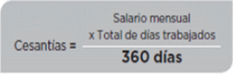 Esta prestación social, se cancela en cuantía de un mes de salario por cada año de servicio y proporcionalmente por fracción de año. Para liquidar el auxilio de cesantías es necesario determinar dos elementos: el número de días trabajados y el salario base de liquidación, cuya fórmula matemática es: