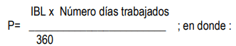 | IBL: | es el Ingreso Base de Liquidación, el cual está constituido por el valor devengado por el trabajador como salario, de acuerdo a la acepción que sobre él se encuentran en el CST., explicada con antelación y el auxilio de transporte en la eventualidad de que el trabajador devengue hasta dos salarios mínimos legales mensuales vigentes. |