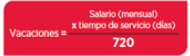 Con respecto a las vacaciones, si bien es cierto no es una prestación social, es un derecho del trabajador a descansar en forma remunerada por haber laborado al servicio del empleador durante un año; por tanto el empleador debe conceder quince (15) días hábiles consecutivos y remunerados por cada año de servicio. Si el contrato de trabajo termina sin que el trabajador haya disfrutado las vacaciones, estas se compensarán en dinero y se pagarán por año cumplido de servicio, y proporcionalmente por fracción de año. El salario base para liquidar las vacaciones será el que devengue el trabajador al momento de comenzar su disfrute, sin incluir auxilio de transporte, recargo por trabajo en días de descanso obligatorio, ni horas extras. Las vacaciones se conceden por disposición del empleador y por ser un descanso remunerado no constituye prestación social, ni se consideran factor salarial para la liquidación de prestaciones sociales e indemnizaciones. La fórmula para su liquidación es: