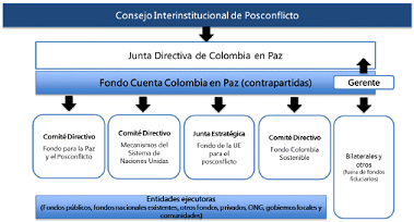 29. El Consejo Interinstitucional de Posconflicto, reglamentado mediante el Decreto 2176 de 2015, es la institución sombrilla que supervisará la implementación de los acuerdos de paz y facilitará la coordinación interinstitucional. Los miembros del Consejo deben brindar lineamientos a la Junta Directiva del Fondo Colombia en Paz sobre las prioridades que surjan a partir de los acuerdos de paz.