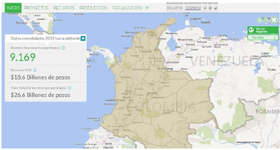 Figura 3. Ejemplo: plataforma seguimiento y evaluación de los proyectos del FCP (modelo Mapa Regalías)