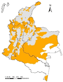 8. Los municipios más afectados han sido La Macarena (Meta), San Vicente del Caguán (Caquetá), Cartagena del Chaira (Caquetá), Cumaribo (Vichada) y La Uribe (Meta), municipios con incidencia alta y muy alta de conflicto (DNP-SDAS, 2015c).