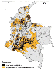 | Mapa 3. Deforestación e incidencia del conflicto armado................................................ | 16 |