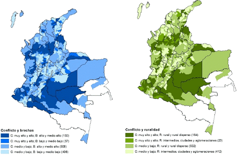 | Mapa 7. Incidencia del conflicto con las brechas socioeconómicas (izquierda) e Incidencia del conflicto con la pobreza rural (derecha).................................................... | 21 |