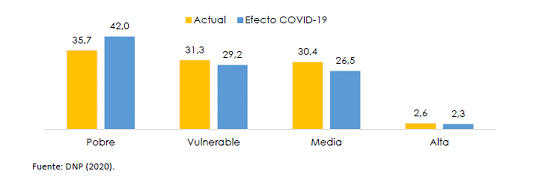 Ante esta situación, el Gobierno nacional diseñó y ejecutó un conjunto de medidas para la contención de la transmisión del virus y la mitigación de los efectos sociales y económicos, con el objetivo de proteger la vida y bienestar de los colombianos, principalmente los más vulnerables, siguiendo recomendaciones basadas en la mejor evidencia científica de la Organización Mundial de la Salud (OMS, 2020) y la mejor información y prácticas internacionales. El Documento CONPES 3999 presenta este conjunto de medidas de respuesta inicial. Aunque estos esfuerzos han sido determinantes para mitigar los efectos de la pandemia, el país, al igual que el resto del mundo, enfrenta una crisis económica y social sin precedentes en la historia reciente, reflejada principalmente en la disminución del crecimiento económico, el aumento de la tasa de desempleo y el aumento en índices de pobreza.