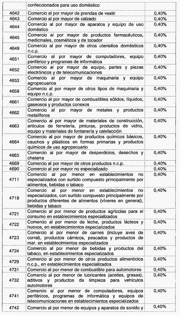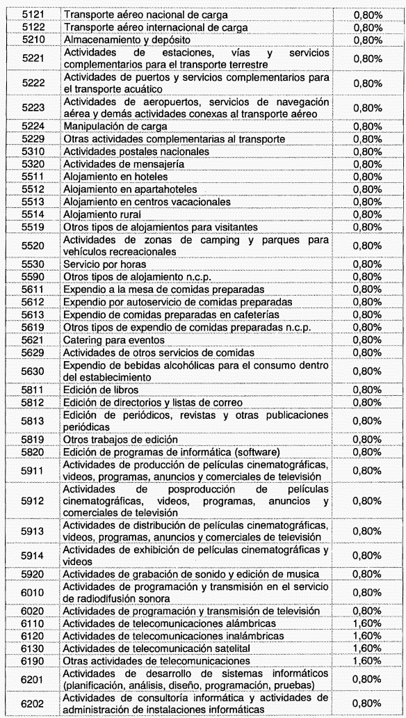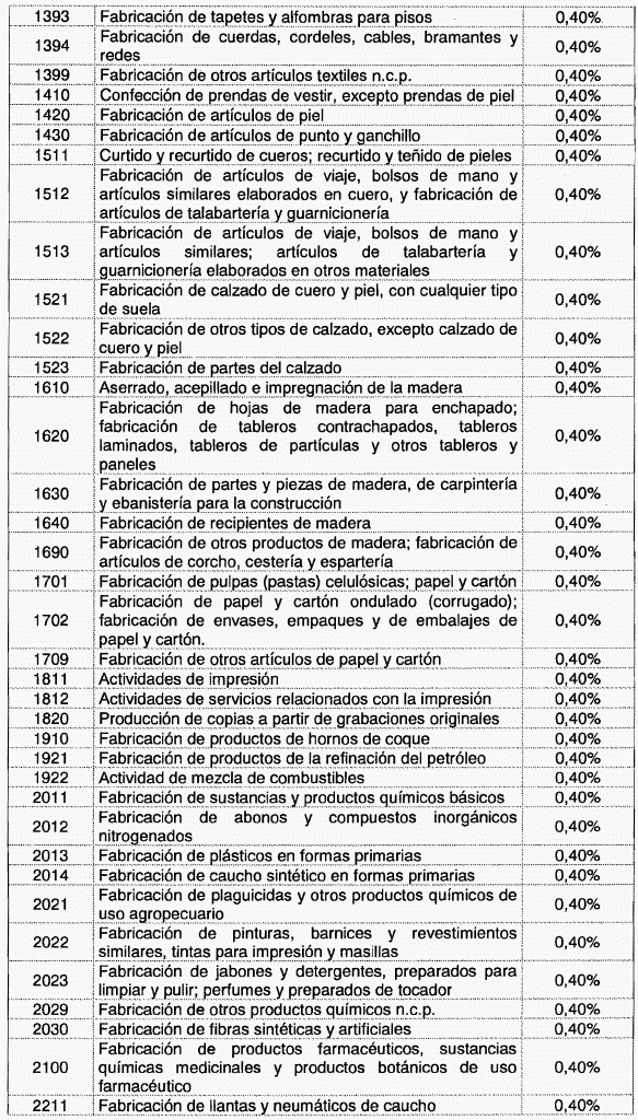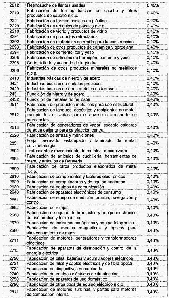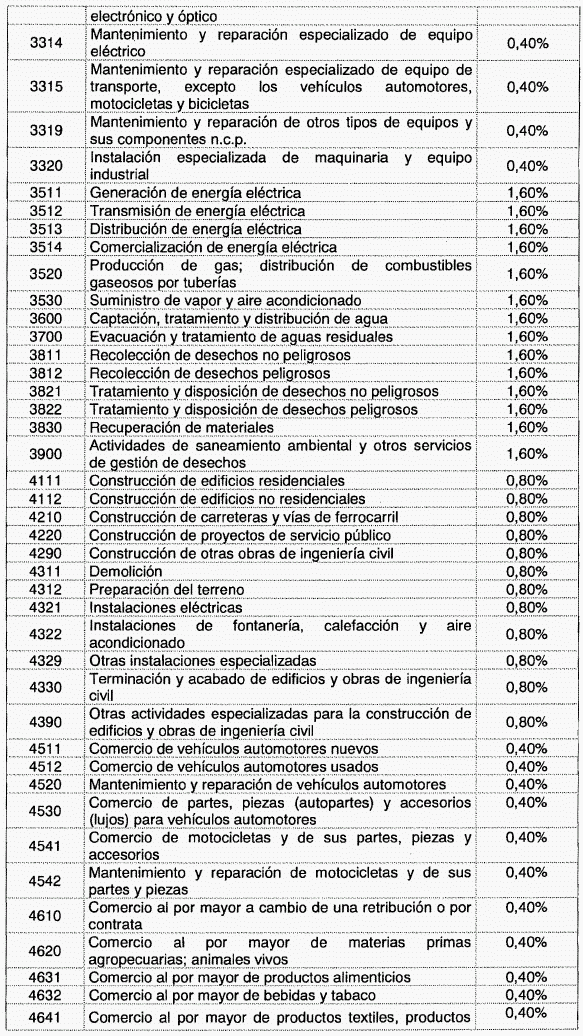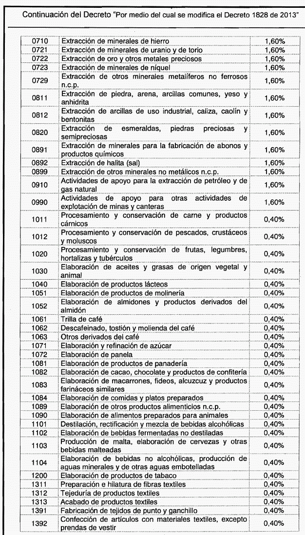 ARTÍCULO 1o. Modíficase la tabla de tarifas contenida en el artículo 2o de Decreto 1828 de 2013, el cual quedará así: