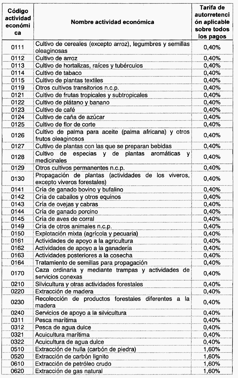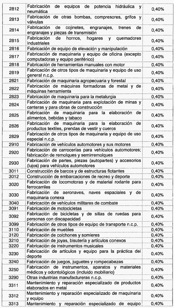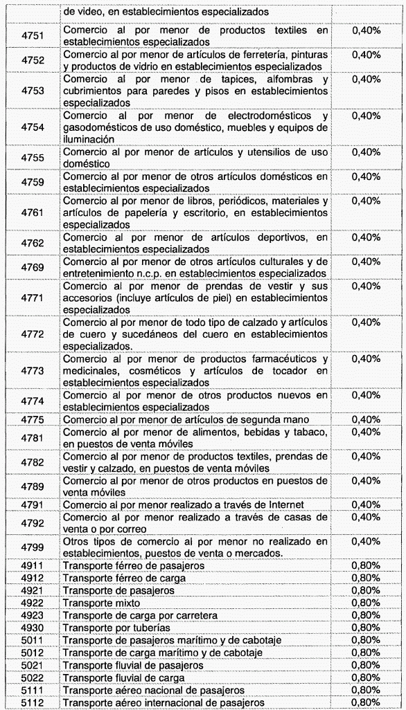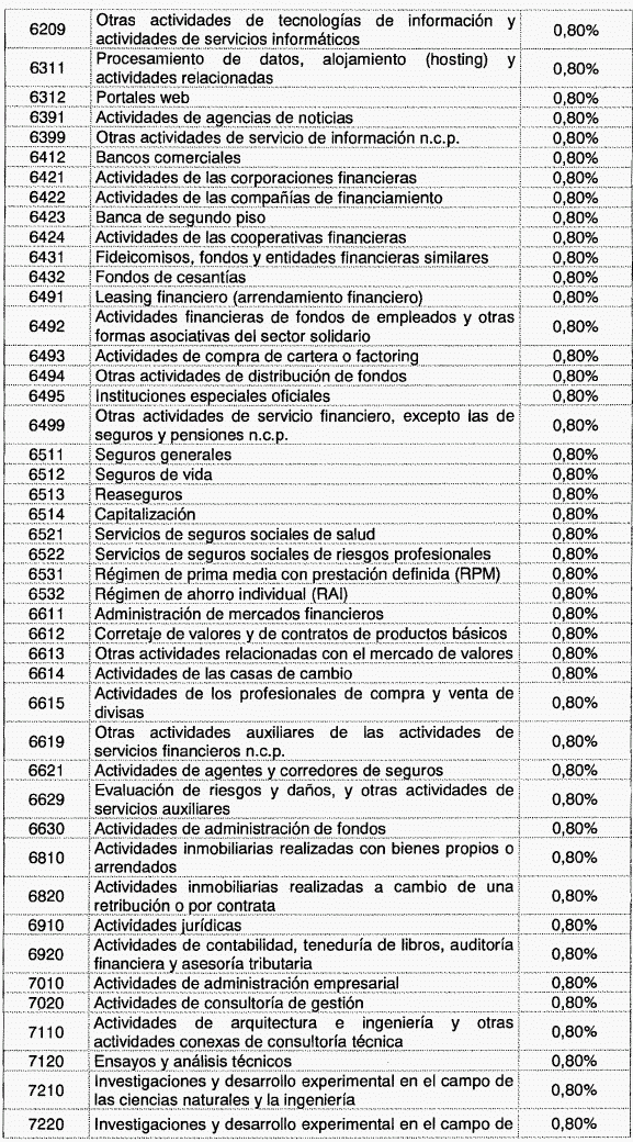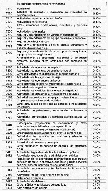 ARTÍCULO 1o. Modíficase la tabla de tarifas contenida en el artículo 2o de Decreto 1828 de 2013, el cual quedará así: