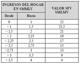 2. El monto del SFV que otorguen las Cajas de Compensación Familiar, con cargo a recursos parafiscales, se determinará teniendo en cuenta los ingresos mensuales del hogar, en SMMLV, y la modalidad de asignación del SFV, de acuerdo con lo establecido a continuación: