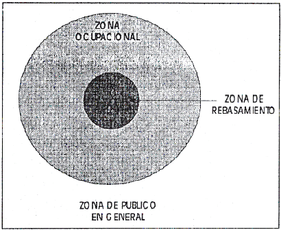 3.29.3 Zona de rebasamiento: En la zona de rebasamiento, la exposición potencial al CEM sobrepasa los límites aplicables a la exposición controlada/ocupacional y a la exposición no controlada del público en general.